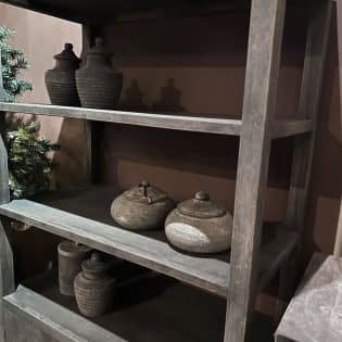 Mooie kast met 2 schappen en in 3 verschillende kleuren verkrijgbaar: old black, dirty grey en naturel Afmetingen: 130x220x50 cm (bxhxd) Je kan nog veel meer bestellen van de Rough-collectie!