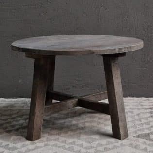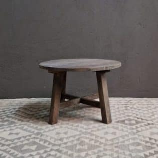 Prachtige doorleefde, robuuste salontafel van oud teak. set van 2 salontafels. in grey en black (op bestelling) Afm. rond 60×43 cm en rond 80×48 cm