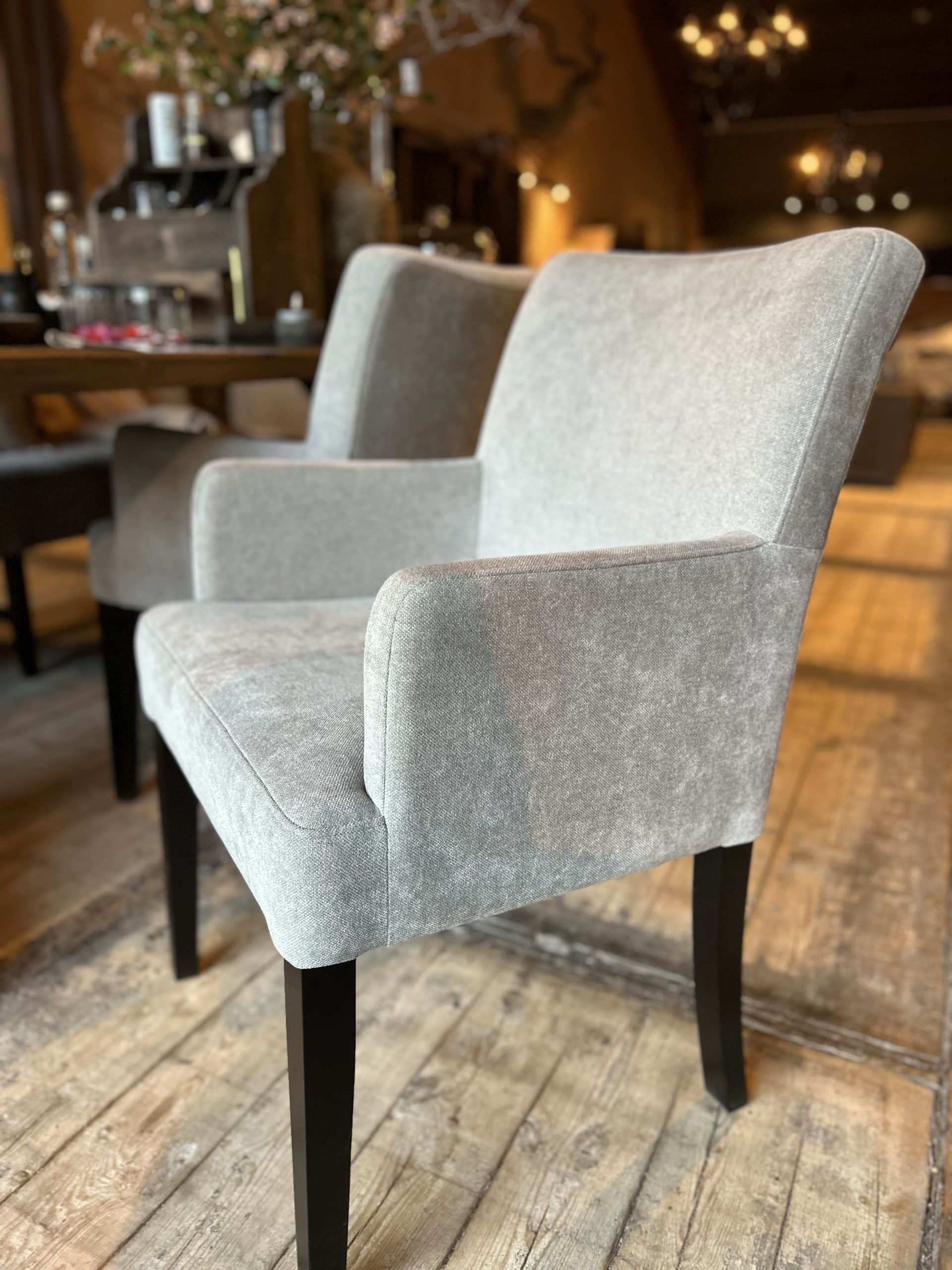 De eetkamerstoel Maria, is een eetkamerstoel bijpassend in elk interieur! Met armleuningen. Verkrijgbaar in verschillende stoffen en kleuren.