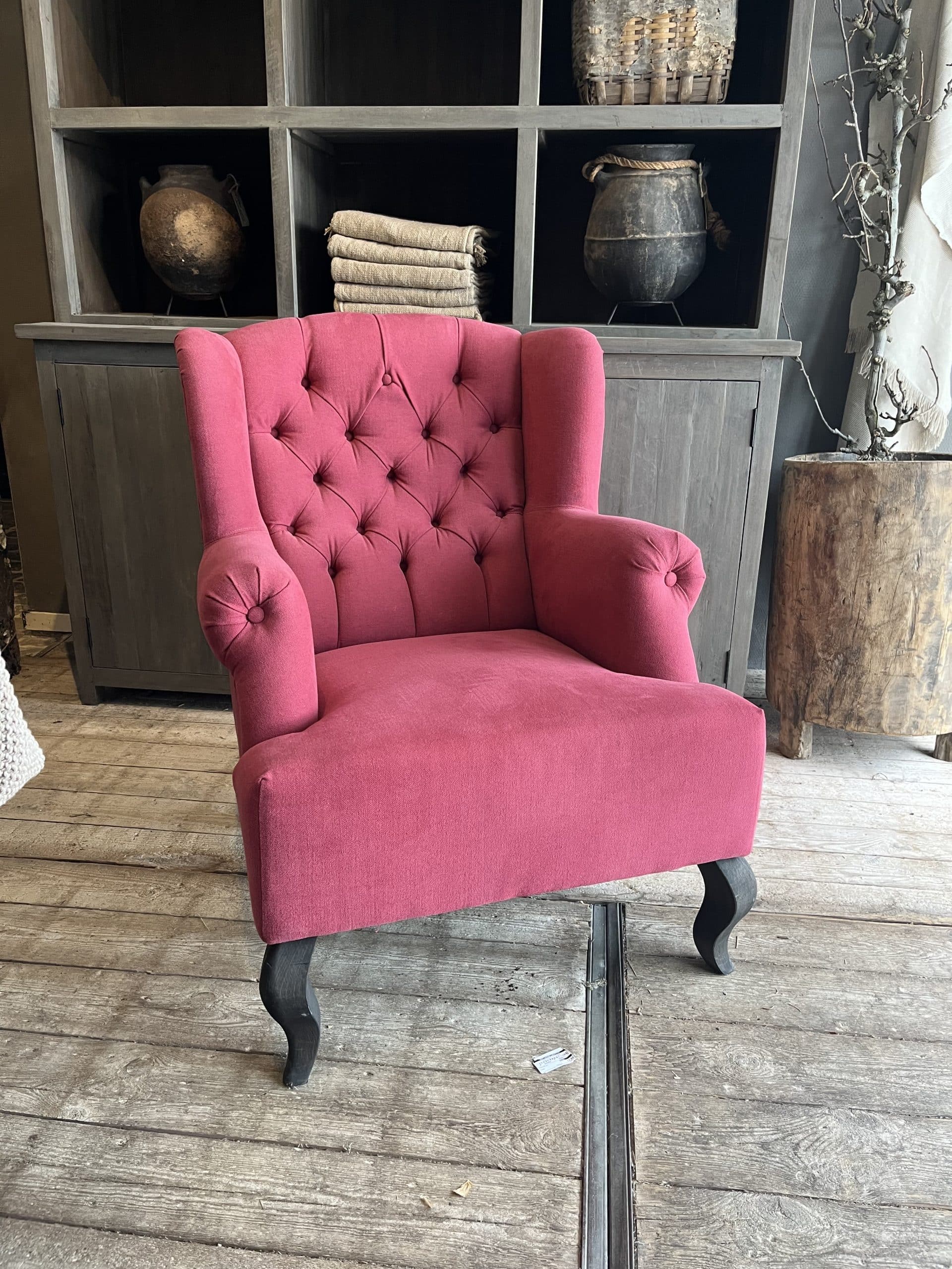 SHOWROOM Fauteuil Laury met oren met capitons in een kiss winered.